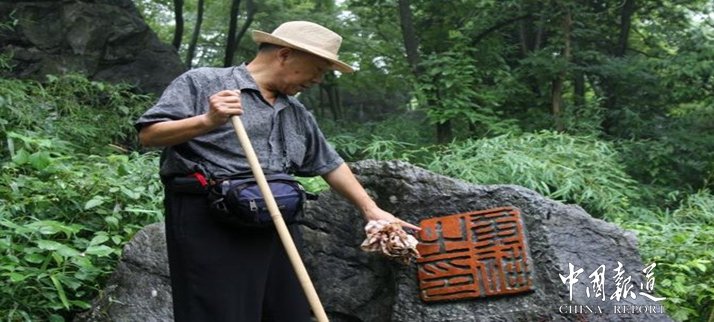 在湖南省常宁市庙前镇,有一座全国独有的"中国印山",500多枚形态各异的朱红印章篆刻作品镶嵌在大大小小的石头上。倾力打造这座印山的,是常宁市文联主席吴国威。