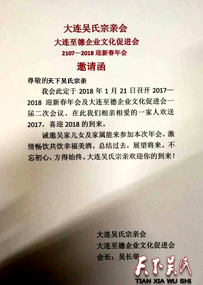 大连吴氏宗亲会邀请函