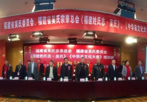 还有来自温州以及福建省内的福州、厦门、泉州、漳州、莆田、龙岩、南平、三明、宁德等各市县会长、秘书长80个代表团,300多位吴氏宗亲参加本次会议。出席会议的有:福建省地方志编撰委员会副主任俞杰、市县志辅导处处长吕秋心,中共省委统战部副部长、福建省姓氏源流研究会会长庄奕贤,《福建姓氏志》专家组副组长高孔煜,民革福建省委原处长、福建省姓氏源流研究会副会长兼秘书长俞黄聿,福建省农业厅原厅长、福建省吴氏委员会会长吴建华,中共武夷学院原书记、福建省吴氏委员会名誉会长吴邦才,福州大学教授、博士生导师、福建省吴氏委员会名誉会长吴汉光,福建省吴氏委员会名誉会长吴荣山,福建省吴氏委员会常务副会长吴茂忠,福建省吴氏委员会副会长吴碧川、吴世雄,福建省吴氏委员会副会长兼秘书长吴振宇,福建省吴氏委员会常务理事:南平会会长吴民友,漳州会会长吴华,泉州泰伯庙董事长吴为兴,龙岩会会长吴汉鑫,宁德会会长吴麟艳,厦门会常务副会长吴金武,三明建宁会会长吴裕庆,莆田吴祭会秘书长吴瑞堂,福州长乐会会长吴德仁、福鼎会会长吴本坤等以及省内各市县会长、秘书长、代表团团长等出席。