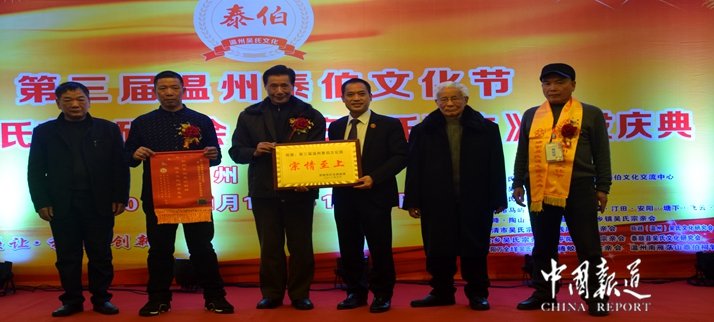 中国报道讯(记者吴蜀丰)三让天下孔子赞,泰伯高风旷古今。天下吴氏一家亲,吴氏文化共传承。在今日(1月12)举行的第三届温州泰伯文化节暨瑞安吴氏文化研究会《瑞安吴氏通志》首发庆典欢迎晚会上,来自海内外华人、华侨及港澳台同胞及全国20省市吴氏宗亲参加欢迎晚宴。