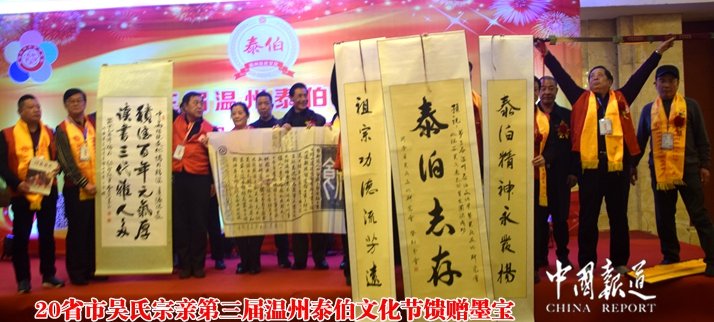 20省市吴氏宗亲为第三届温州泰伯文化节馈赠墨宝