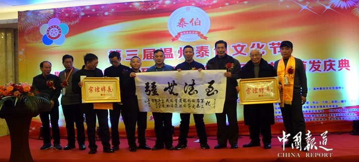 中国报道讯(记者吴蜀丰)三让天下孔子赞,泰伯高风旷古今。天下吴氏一家亲,吴氏文化共传承。在今日(1月12)举行的第三届温州泰伯文化节暨瑞安吴氏文化研究会《瑞安吴氏通志》首发庆典欢迎晚会上,来自海内外华人、华侨及港澳台同胞及全国20省市吴氏宗亲参加欢迎晚宴。