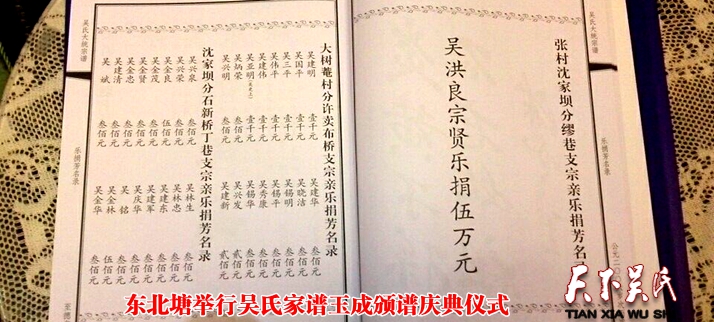 今天,在东北塘吴氏宗谱玉成弘发之际,大家闻着崭新的宗谱所散发出的沁人心脾的油墨清香,望着宗谱续接载入的吴氏子孙名录,读着宗谱所记载的吴氏先祖的丰功伟绩,内心充满着满腔的喜悦。这种喜悦,是来自大家付出艰辛劳动而获得丰硕成果后的一种心田滋润,是可以让子孙后代共享吴氏文化精髓的一种心音相传。