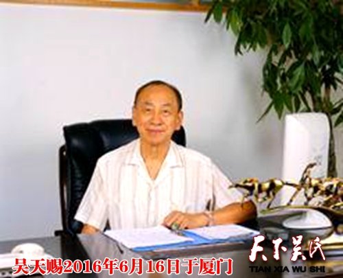 注:吴天赐,香港人,第三届世界至德宗亲总会主席、香港至德总会理事长、香港吴氏宗亲总会主席、厦门吴氏宗亲会名誉会长。2004年吴天赐获“世界杰出华人”荣誉称号、2006年获“亚太最具创造力领袖”荣誉称号、2007年7月1日,联合国授予吴天赐老先生“和谐贡献奖”,以表彰他对世界和谐和公共事业所做的贡献。