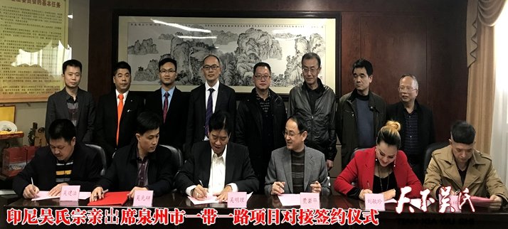天下吴氏讯(特约采编 吴建法)日前,印尼吴氏宗亲总会会长,闽南同乡会理事长吴明理出席在泉州市政府召开一带一路项目对接签约仪式,下午到安溪参观吴氏三和企业的茶文化博物馆,走访吴氏茶企茶店,共谋中印两国的经贸合作意向。