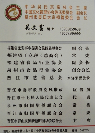 泉州市工商联(总商会)副会长