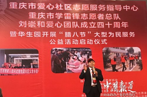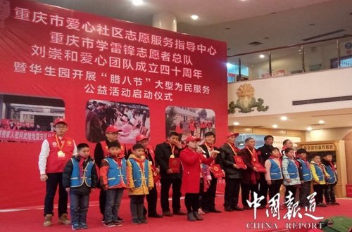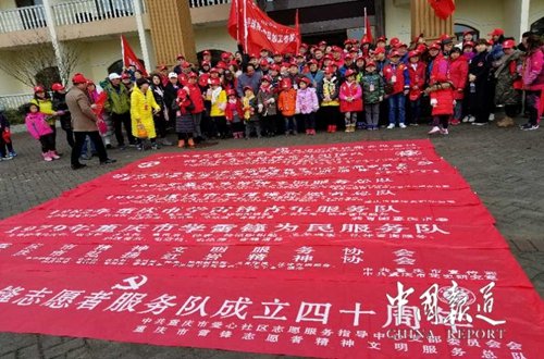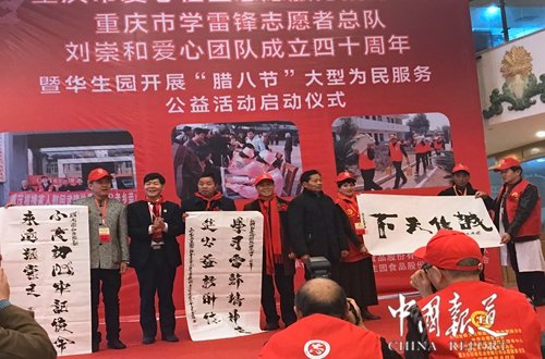 中国报道讯(记者 吴蜀丰 田雪琴 特约采编 吴天下)不忘初心、牢记使命、践行十九大精神、永远跟党走、学习雷锋精神志愿服务、走进公益新时代。重庆市爱心社区志愿服务指导中心,重庆市学雷锋志愿者总队刘崇和爱心团队成立四十周年大型为民服务活动启动仪式今日(1月20)在大渡口新山村凤祥路华生园社区隆重举行。