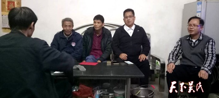 天下吴氏讯(特约采编 吴昌禄)日前(2018年1月21),在广东珠三角吴氏宗亲总会会长吴锦添的率领下,与执行会长兼秘书长吴昌禄、副会长吴百祥、副秘书长吴光辉一起驱车行程百里,深入到惠州市博罗县的杨村镇、公庄镇、泰美镇、石坝镇,龙门县的平陵镇开展进村入户走访吴氏宗亲活动。