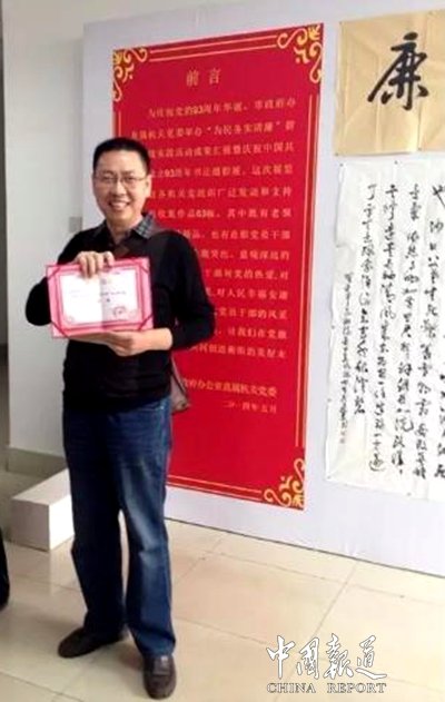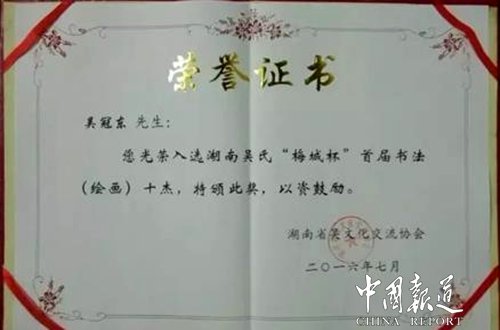吴冠东是的。不仅是义工协会的,只要是我知道的任何社会团体组织的慈善拍卖,我都会毫不犹豫地送去我的精品力作。自从我进入书画圈以来,只要我参与的活动,基本上都获得了一定的荣誉和奖赏。承蒙各界朋友的抬爱,目前,我已经被聘请为“船山润物书画社”副社长、“大海书画院”副院长以及“香港宅妆设计师事务所”和“素文化装饰设计工程公司”特聘的书法顾记者,作品除被众多藏家和爱好者收购外,还被《衡阳保卫战纪念馆》《王船山纪念馆》以及长沙的《黄兴纪念馆》等永久性收藏。