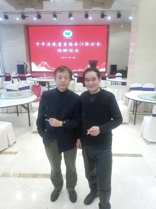 中华清风书画协会李坤泽主席与艺术顾问吴卫祖在江阴分会挂牌仪式期间的合影