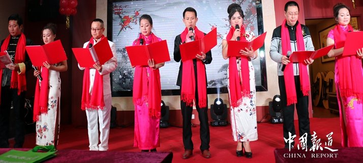 今晚难得飘雪花,宗亲再聚迎春哒。畅谈鸡岁访乡路,共话狗年走天涯。朗之诵之乐火火,歌也舞也笑哈哈。欣逢盛世重文化,天下吴氏是一家!