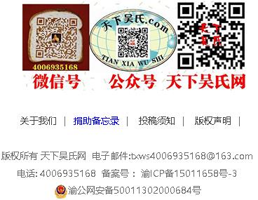 我是吴氏好儿郎,仁爱谦让传万代。相约天下吴氏网,因为有你更精彩!