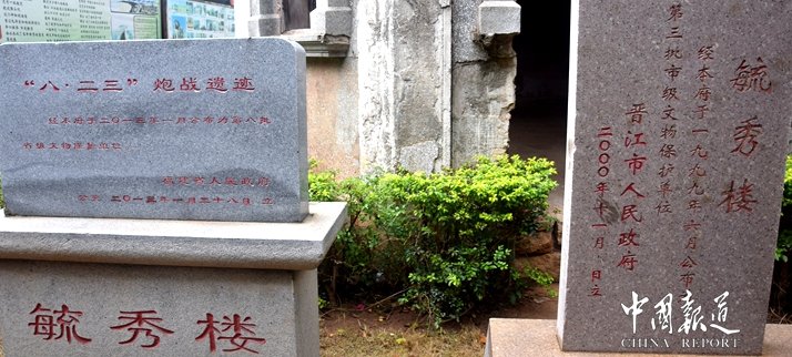 1958年8月23日下午5时30分,围绕金门的围头、大嶝、石井、莲河、厦门的我军炮兵,在两个多小时的炮击中,向金门岛发射了3万多颗炮弹。“8·23”炮战正式拉开了帷幕。如果说“8·23”炮战在50年前确立了台海双方军事对峙的局面——双方的主要对抗实际上已经转移到国际政治舞台,那么,围头半岛在这场战争中扮演了至关重要的角色。静默的毓秀楼见证了这场威震中外的战争。我在50年后的夏天重新深访了她沧桑的容颜:围头村委办公大楼后面,典型的民国时期建筑风格的两层小洋楼,残垣破壁,门扉紧闭,在周围崭新的民房之间,显得那样惹眼,那般落寞。听同行的朋友介绍,毓秀楼是上世纪30年代一位吴姓华侨修建的,炮战时成为海军某连的连部,其大门正对面不足五米的地方就是海军指挥所。炮战一开始,高耸的楼房就成了敌人射击的目标,先后有6发炮弹打进了毓秀楼,门亭、围墙、房顶、窗台被打穿了几个大洞。倾斜的门亭由两支砖柱支撑着,两块醒目的标识“弹着点”悬挂在黑褐的墙壁上,两杆廷院灯是簇新的,倒反衬出毓秀楼的老旧与残破。无论如何,她是50年前那一场战争的亲历与见证者。