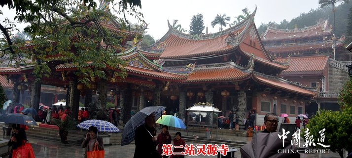 第一站泉南泰伯庙。泉南泰伯庙建筑群位于晋江市灵源街道灵源山上,依山面海,气势磅礴,坐甲向庚兼寅申,占地面积15000平方米,耗资千万,由闽南延陵始祖泉南轮祀会于甲申年(公元2004年)春节倡建,海内外吴氏族亲鸠资千万元,丁亥年(公元2007年)首期工程竣工。
