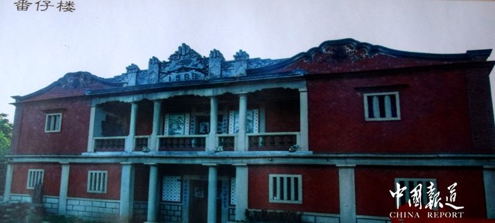 建于民国时期、中西合璧的“话桑别墅”,三开间的古大厝沿袭闽南古民居的规制,护厝却是两层高钢筋混凝土的番仔楼。古厝里的一副对联为我们道出了厝主人的来历:“寄迹香江怀梓里,经商加国念侨乡”。