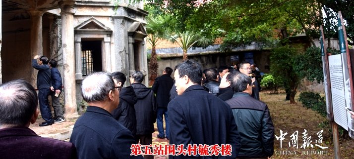 第五站围头村毓秀楼。毓秀楼由旅菲华侨吴天敬建于1931年。1958年8月23日始,解放军安业民烈士生前所在部队在围头与金门国民党军展开炮战,毓秀楼遭国民党军炮击,墙上弹孔累累。毓秀楼是“8·23”炮战红色旅游的景点,1999 年被晋江市评为“市级文物保护单位”,是泉州市、晋江市的“国防教育基地。