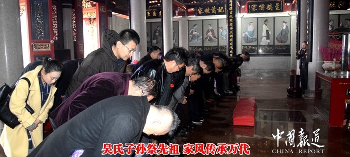 中国报道讯(记者吴蜀丰特约通讯员 吴佳佳)元月27日,中华吴氏宗亲总会“圆梦中华·晋江吴文化生态行”考察活动在晋江举行,考察点包括泉南泰伯庙、灵源寺、灵水古村落、灵水吴氏家庙、围头故事馆、围头毓秀楼(八·二三炮战遗址)、凤文吴氏宗祠等晋江独具特色的吴文化生态圈,并在泉南泰伯庙举行了简约的拜祖仪式;参加华吴一届五次主席会议的高层领导及嘉宾六十多人参加了本次考察活动。