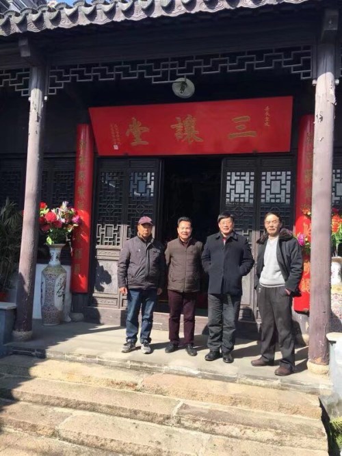 2018年2月6日下午,常州市总工会原主席、常州市吴文化研究会执行会长薛焕炳,常州市谱牒与祠堂文化研究会会长朱炳国来常州市吴氏宗亲会调研指导工作,并参观了延陵吴氏宗祠。常州市吴氏宗亲会会长吴再兴、监事长吴振达、副会长吴伟国,延陵季子宗亲会监事长吴明刚一起陪同参观。薛主席带来了一百五十多万字新作《兰陵雅集》《中吴遗珠》。该书对常州人文始祖季札公进行了详细的阐述,顺着这一脉络对古延陵常州的自然人文景观进行了一一串连,读来今人振奋。这也是常州作为中吴八邑之首文化研究方面的又一巨著,可喜可贺!