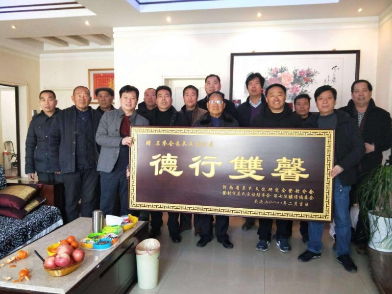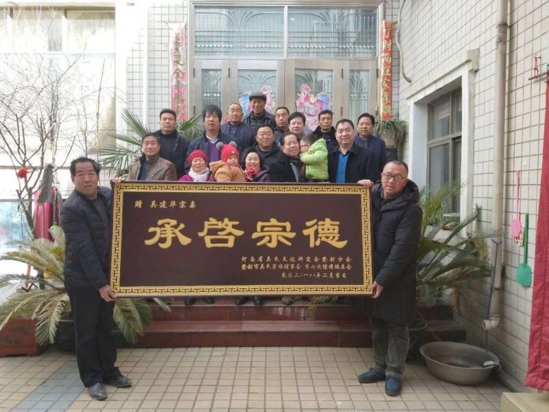 春节来临之际,河南省吴氏文化研究会登封分会理事会,在会长吴建华带领下慰问德高望重的宗亲,给为吴氏家族做出巨大贡献的会长吴建华、名誉会长吴均、名誉会长吴文标 、名誉会长吴梅虎送牌额!