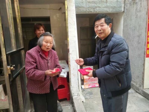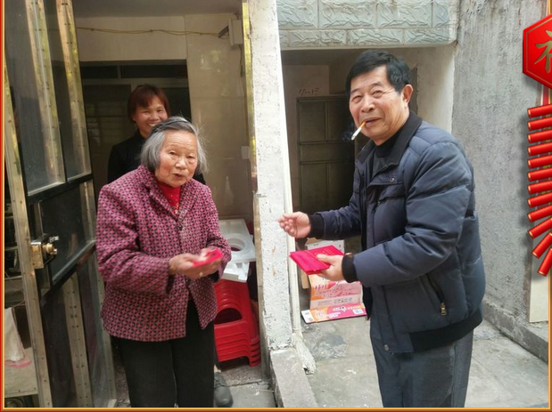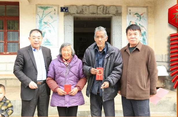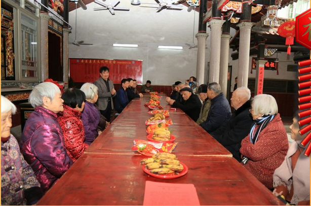 第四个慰问日,2月12日(农历十二月廿七日下午,执委会吴伟忠、吴仁楫、吴德政、吴水龙、吴益兴、吴建霖、吴晓英等一行前往城厢镇墩坂村进行慰问。村两委早早地把受慰问的对象召集到村部。村委会主任和会长吴伟忠分别对老寿星致以春节敬老感言。