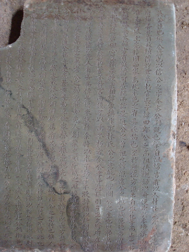 墓主吴璘的世系是:1承顺(1131年徙宁化石壁)-2坤二-3吉甫-4五四郎-5千九郎-6六四郎-7念二郎-8源远-9常镇-10吴璘(生于1466年,卒于1550年)