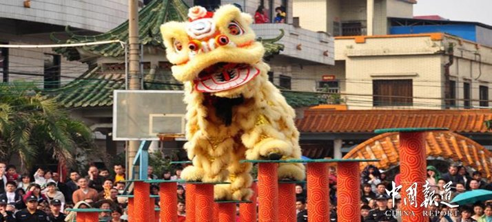 【关于醒狮】醒狮属于中国狮舞中的南狮,是一种地道的广东省传统民间舞蹈,是广东舞苑中的一宝。历史上由唐代宫廷狮子舞脱胎而来,五代十国之后,随着中原移民的南迁,舞狮文化传入岭南地区。明代时,醒狮在广东出现,起源于南海县。现流传于广东、广西及东南亚各国华侨中间;在广东境内主要分布在珠三角及粤西地区。广东醒狮被认为是驱邪避害的吉祥瑞物,每逢节庆,或有重大活动,必有醒狮助兴,长盛不衰,历代相传。