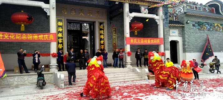 中国报道讯(记者吴蜀丰 特约采编吴昌禄)2018年2月23日(农历正月初八),香港泰伯基金会常务会长、珠三角吴氏宗亲总会会长吴锦添,香港泰伯基金会常务会长、珠三角吴氏宗亲总会常务副会长吴建忠,珠三角吴氏宗亲总会副会长吴星显,广州吴平治等吴氏宗亲前往佛山兴贤吴氏大宗祠与佛山吴氏宗亲吴杰棠、吴镇、吴建宏等宗亲一起观看醒狮表演和进行宗亲交流,共贺新春佳节。