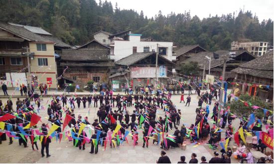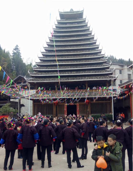 春节期间,嫁在外面的姑娘们都要携儿带女回娘家看望父母,看望兄弟,即“走年”,这是传统风俗习惯。今年,广西三江侗族自治县林溪镇林溪村岩寨屯的兄弟们把姑娘回娘家当做一件喜事来办,丰富春节的活动内容。确定正月初四这天,欢迎本寨嫁岀克的姑娘们一起回娘家。寨里备100桌百家宴来款待姑娘和姑爷们到来。