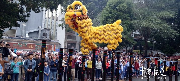下午三点,进行醒狮表演等丰富多彩节目,让前来参加联谊活动的宗亲欣赏到一场赏心悦目的文艺大餐。下午五点,大盆菜晚宴开始,宗亲们一边吃大盆菜,一边欣赏醒狮表演,一边进行交流。