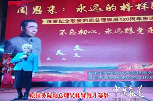 中国报道讯(记者吴蜀丰特约通讯员 吴燕平 吴裕增)3月4日,不忘初心,永远跟党走!“周恩来:永远的榜样!——纪念敬爱的总理诞辰120周年座谈会!”在深圳市福田区春满园酒店隆重举行。原国务院副总理吴桂贤﹑厦门吴氏宗亲会,潮汕吴氏宗亲会,东莞吴氏宗亲会,深圳吴氏宗亲会,两陆吴氏宗亲会香港吴氏宗亲会,珠海吴氏宗亲会,广州增城吴氏宗亲会,吴川上郭吴氏族吴氏宗亲代表在深圳参加"隆重纪念周总理诞辰120周年,毛泽东思想永放光芒"活动。