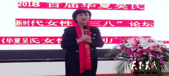 原标题《孝德联宗谊 巾帼心向党 携手新时代 首届华夏吴氏新时代女性“三八”论坛暨《华夏吴氏女性》会刊创刊号首发式在广州举行》,2018年3月8日,首届华夏吴氏新时代女性“三八”论坛暨《华夏吴氏女性》会刊创刊号首发式在广州南方医科大学内大吉领宾馆隆重举行。吴晓恒将军、《华夏吴女集》主编吴志刚、河南省吴氏文化研究会会长吴天玺等人经应邀出席了仪式,并发表了重要讲话。