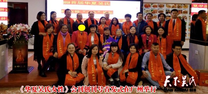 原标题《孝德联宗谊 巾帼心向党 携手新时代 首届华夏吴氏新时代女性“三八”论坛暨《华夏吴氏女性》会刊创刊号首发式在广州举行》,2018年3月8日,首届华夏吴氏新时代女性“三八”论坛暨《华夏吴氏女性》会刊创刊号首发式在广州南方医科大学内大吉领宾馆隆重举行。吴晓恒将军、《华夏吴女集》主编吴志刚、河南省吴氏文化研究会会长吴天玺等人经应邀出席了仪式,并发表了重要讲话。