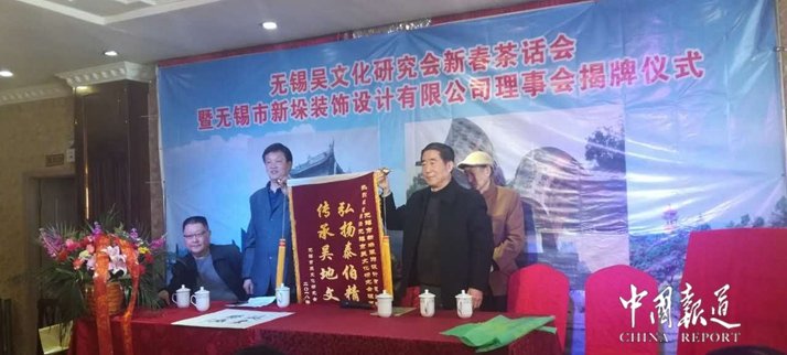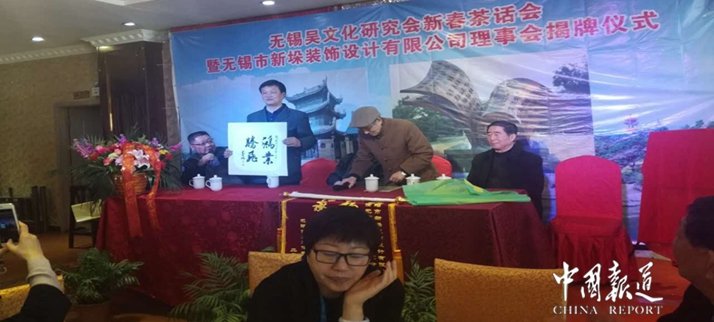 中国报道讯(记者吴蜀丰特约采编吴建东)2018年3月25日,在这春意盎然,绿草如荫的日子里,无锡吴文化研究会新春茶话会暨无锡市新垛装饰设计有限公司理事会揭牌仪式在蓝晓大饭店隆重召开。会议由吴文化研究会张崇道副秘书长主持。