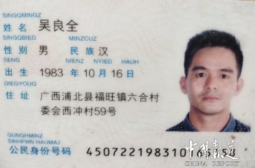 广西浦北县福旺镇六合村吴良全头部重伤期待你的援助