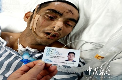 您好!我叫梁小芳!家住广西浦北县福旺镇六合村委会西冲村人,因丈夫(吴良全)2018年2月25日(即农历正月初十)下午两点左右,在浦北县福旺镇至三合镇的大田路段发生意外事故,导致头部重伤,于2月25日下午4点多120急救车送往浦北县人民医院急救,头部骨骼有不同程度骨折,至今已10余多天,仍然未见好转,这几天甚至连夜发高烧至(39°)不退,故此问题,浦北县人民医院的有关医生的建议,需要转医院治疗,在3月7号那天转到了广西钦州市第一人民院重症监护室治疗。老公在重症监护室里已经躺了快一个月了。