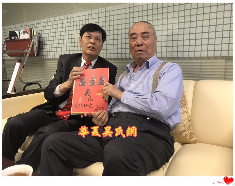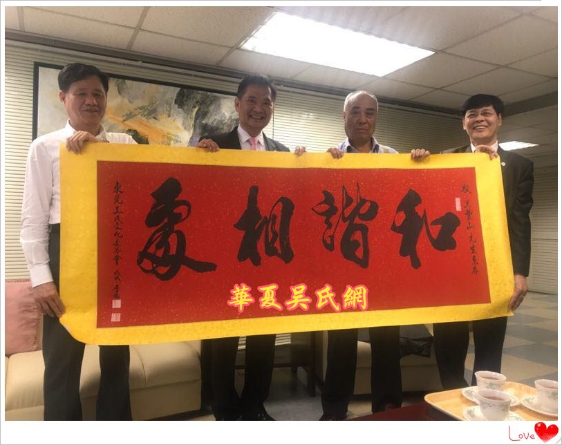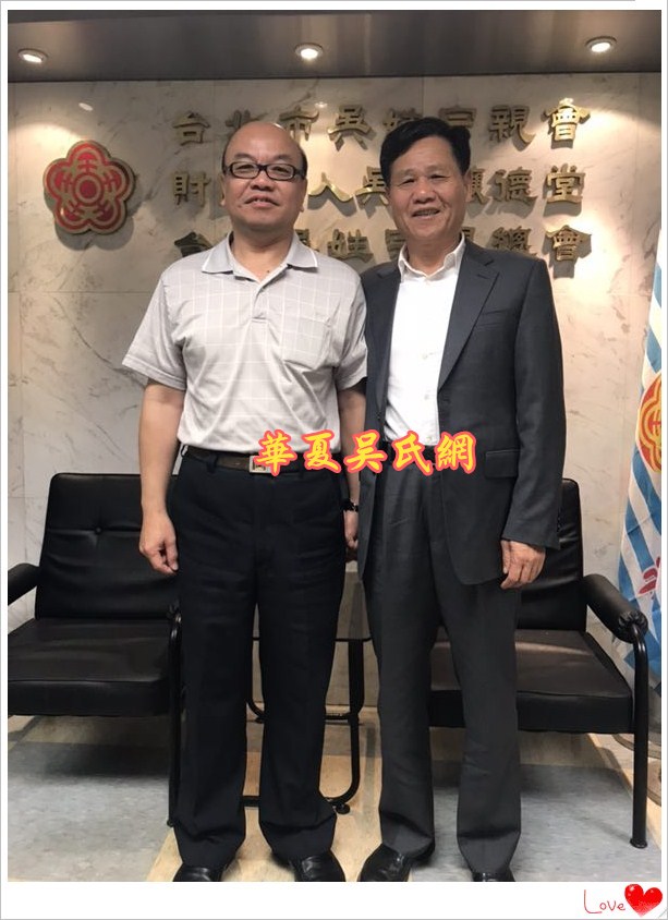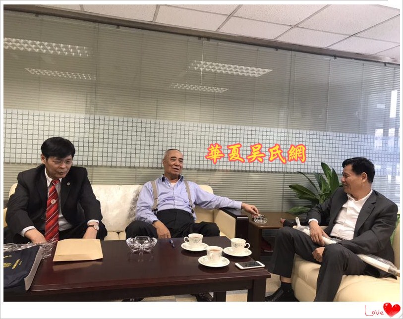 2018年3月29日上午10点30分,台湾吴姓宗亲总会会长吴丰山和秘书长吴景瑞等人,在台北南京东路215号泰伯大楼,亲切会见了世界吴氏宗亲总会二届主席吴良民宗长、厦门市吴文化研究会会长吴国荣博士、台湾桃园吴姓宗亲会顾问吴国祯、东莞吴氏宗亲会荣誉会长吴铭煜等宗亲。