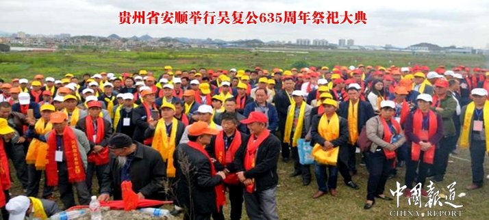 中国报道讯(吴蜀丰报道 特约撰稿吴青柠 )2018年4月1日,星期六。贵州安顺的天气有点怪,夜里和早晨还下着大雨,吃早饭时就大雨渐止,天气转晴到多云,可能老天有眼,祖上保佑。来自安徽、湖南、贵州、湖北、云南、广西6省(区)的明朝开国元勋吴复公后裔500多人在贵州安顺举行吴复公去世635周年祭祀大典。