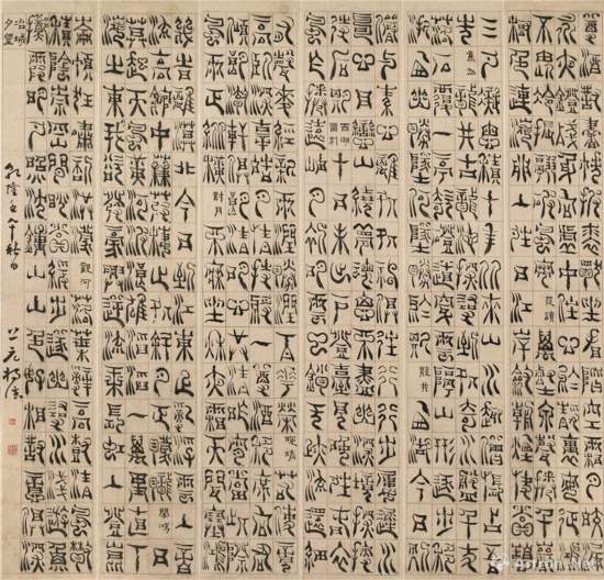 杨法 篆书六条屏(局部) 纸本水墨96x16.5cmx6