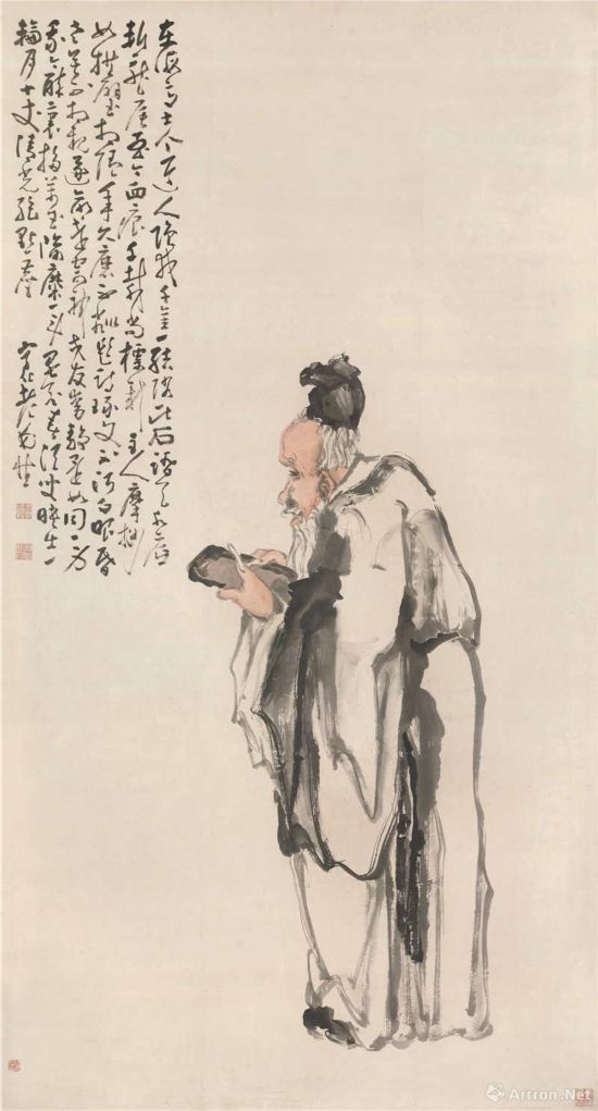 黄慎 玩砚图 立轴 设色纸本 196x105.2cm