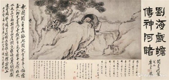 闵贞 刘海戏金蟾图 镜片设色 纸本 92x193cm