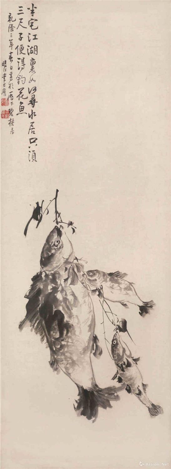 李方膺 三鱼图(局部) 立轴 122x45cm 水墨纸本