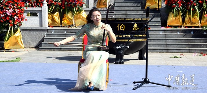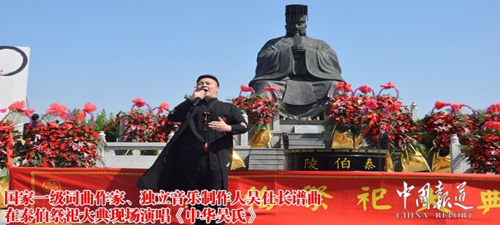 由中华吴氏宗亲总会主席吴文富、中华吴氏宗亲总会秘书长吴谨程作词,国家一级词曲作家、独立音乐制作人吴仕长谱曲在泰伯祭祀大典现场演唱《中华吴氏》之歌迎来台下阵阵掌声。