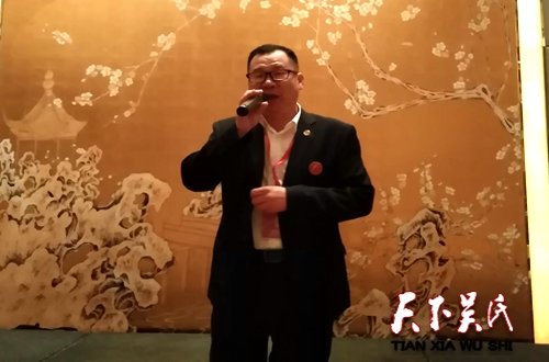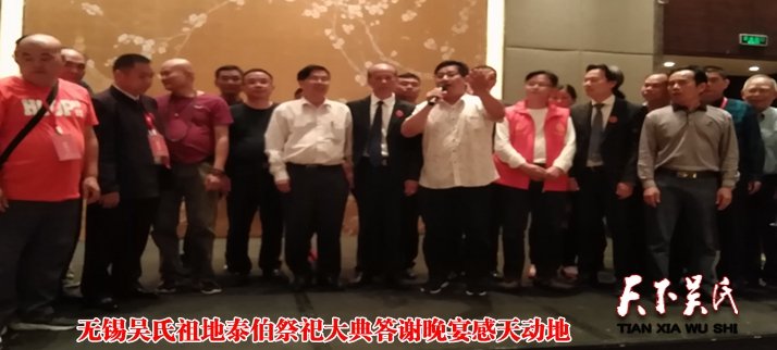 天下吴氐讯(吴蜀丰 )2018吴文化“亲情中华”泰伯祭祀大典4月10日在江苏省无锡市新吴区泰伯陵文化广场成功举办。在当晚答谢宴上,当中华吴氏宗亲总会主席吴文富热情洋溢的答谢辞刚完,在潮水般掌声中,国家一级词曲作家、独立音乐制作人吴仕长再次唱响《中华吴氏》。