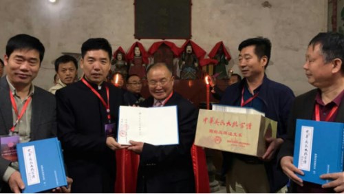 同时互赠谱书、书法作品及吴氏专刊等。中午庆祝宴会结束后,