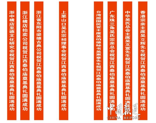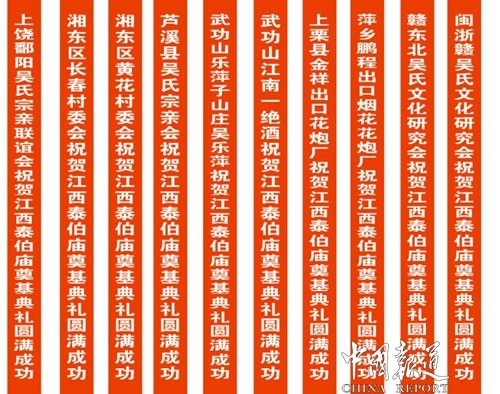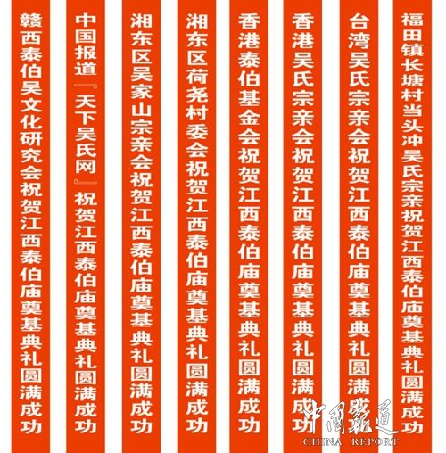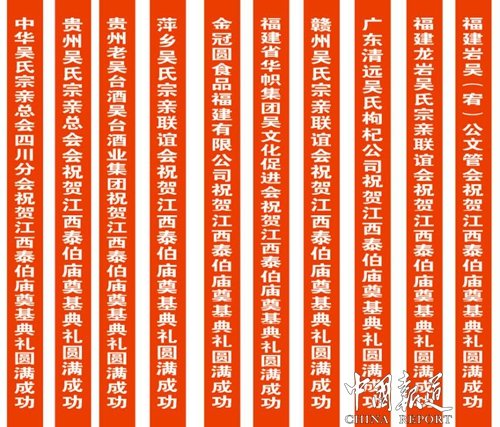 中国报道讯(吴蜀丰江西报道)相约江西萍乡为泰伯庙奠基“添砖加瓦”的邀请函发岀以来至今,受到全国各地吴氏宗亲及海外宗亲的关注,我们在此表示衷心感谢并真诚期待你的光临!现将4月26日(农历三月十一日)参加的祝贺部分单位公示如下(排名不分先后);名单更新中。