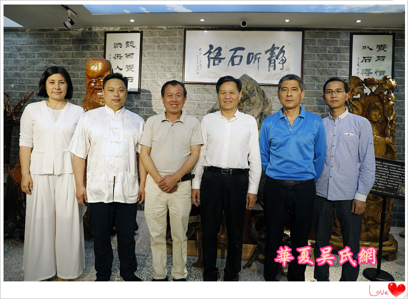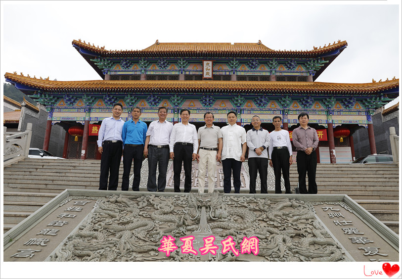 4月13日--厦门吴氏宗亲会 吴国荣会长(左四)在南康百家姓和谐城主殿前与江西省、赣州市、南康区部分宗亲的合影留念