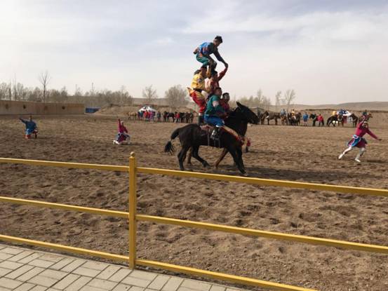 下午三点,驱车前往“青克尔牧家乐”看马术表演,这支马术队伍由60多名优秀的青少年骑手组成。首先表演的是骑士在马上倒立,马上格斗和快马摸地拾哈达的高难度动作。而后分成二支部落队伍,上演成吉思汗统一蒙古的历史画面,经过一个多小时马术话剧的演出,让游客在看精彩马术表演中看到成吉思汗征战各部落的战斗场面。即悲壮又雄伟,受到一场爱国、爱族、爱我中华正能量的教育。