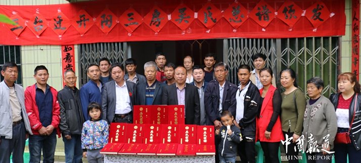 中国报道讯(特约采编 吴天友 吴忠言 吴忠致)4月29日,在这个百花盛开、春意盎然的日子里,开阳三房吴氏宗亲及各乡镇部分宗亲代表欢聚在吴文杰宗亲家里,用简陋的条件和简便的形式进行总谱颁发仪式。