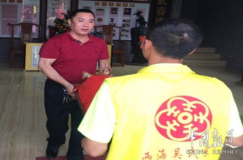中国报道讯(特约采编昌禄)2018年5月1日,广东珠三角吴氏宗亲总会会长吴锦添率团参加顺德北滘西海涧谷吴公祠重建6周年庆典活动,受到了北滘西海吴氏宗亲的热烈欢迎。