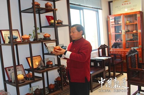 中国报道讯(吴蜀丰 江苏报道)马云曾说:我比总统还忙,却没有总统的权利!其实比总统还忙的父母们也是这样说,“我比总统还忙”,诚然,中国第五代紫砂传人吴海龙近两年也是“比总统还忙”,都忙些啥?吴海龙整天忙着推出自己的紫砂壶精品杰作;也忙于各类社会公益活动及大型艺术学术交流,最近一次在吴氏宗亲总会组织的泰伯、仲雍的祭祖仪式上见到了吴海龙先生的身影!吴海龙先生是江苏宜兴人,出身于陶艺世家,自幼受父亲吴余清的熏陶对紫砂壶情有独衷,对家传的制壶工艺有浓厚兴趣。